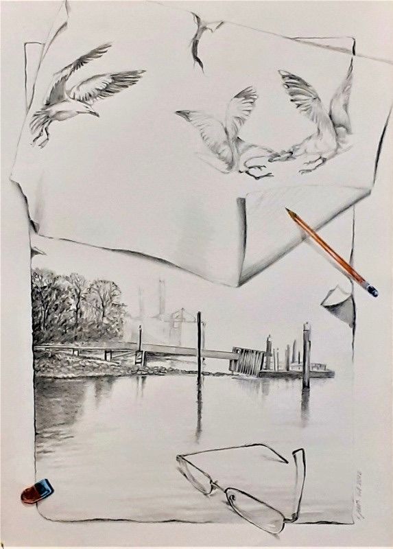 Mit leisem Humor werfe ich offene, nachdenkliche Blicke – in mich hinein und um mich herum. Denke vorwärts, rückwärts, seitwärts, weitwärts, engwärts, aufwärts, abwärts, kreiswärts, gebe Portion Phantasie hinzu. Mache Bilder davon: meine („Kunst“)Werke !?!